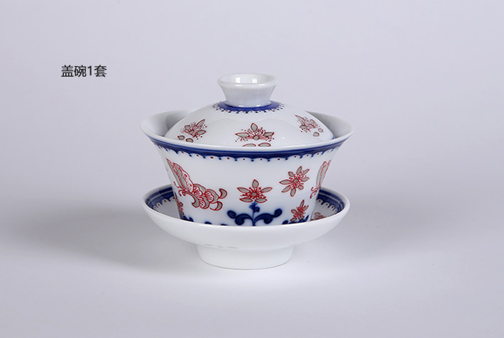 8頭青花釉里紅茶具蝶舞