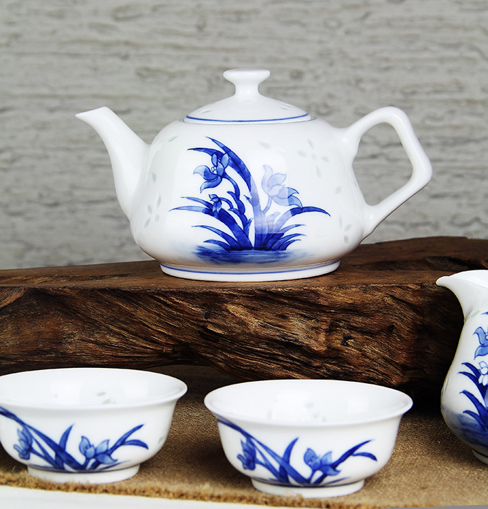 8頭玲瓏半刀泥青花工夫茶具蘭花