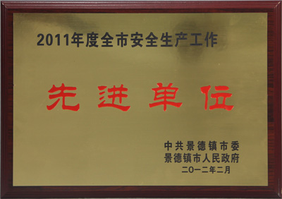 公司獲2011年度景德鎮(zhèn)市陶瓷工業(yè)十強企業(yè)及全市安全生產(chǎn)工作先進單位