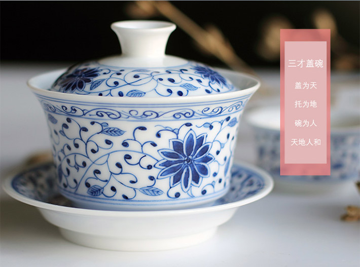 8頭玲瓏功夫茶具開堂山水蓋碗